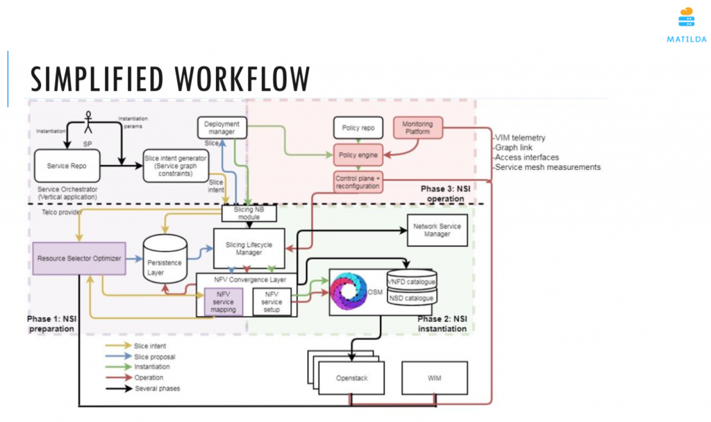 - Matilda: designs and implements a holistic 5G end-to-end services operational framework, tackling the life cycle of design, development and orchestration of 5G-ready applications and network services over virtual and physical infrastructure, following a unified programmability model and a set of control abstractions.