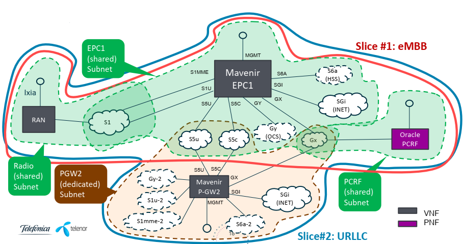 Here’s a graphic of how it works. Slice one is dedicated to enhanced mobile broadband (eMBB) and slice two is for enhanced mobile broadband (eMBB) use cases.