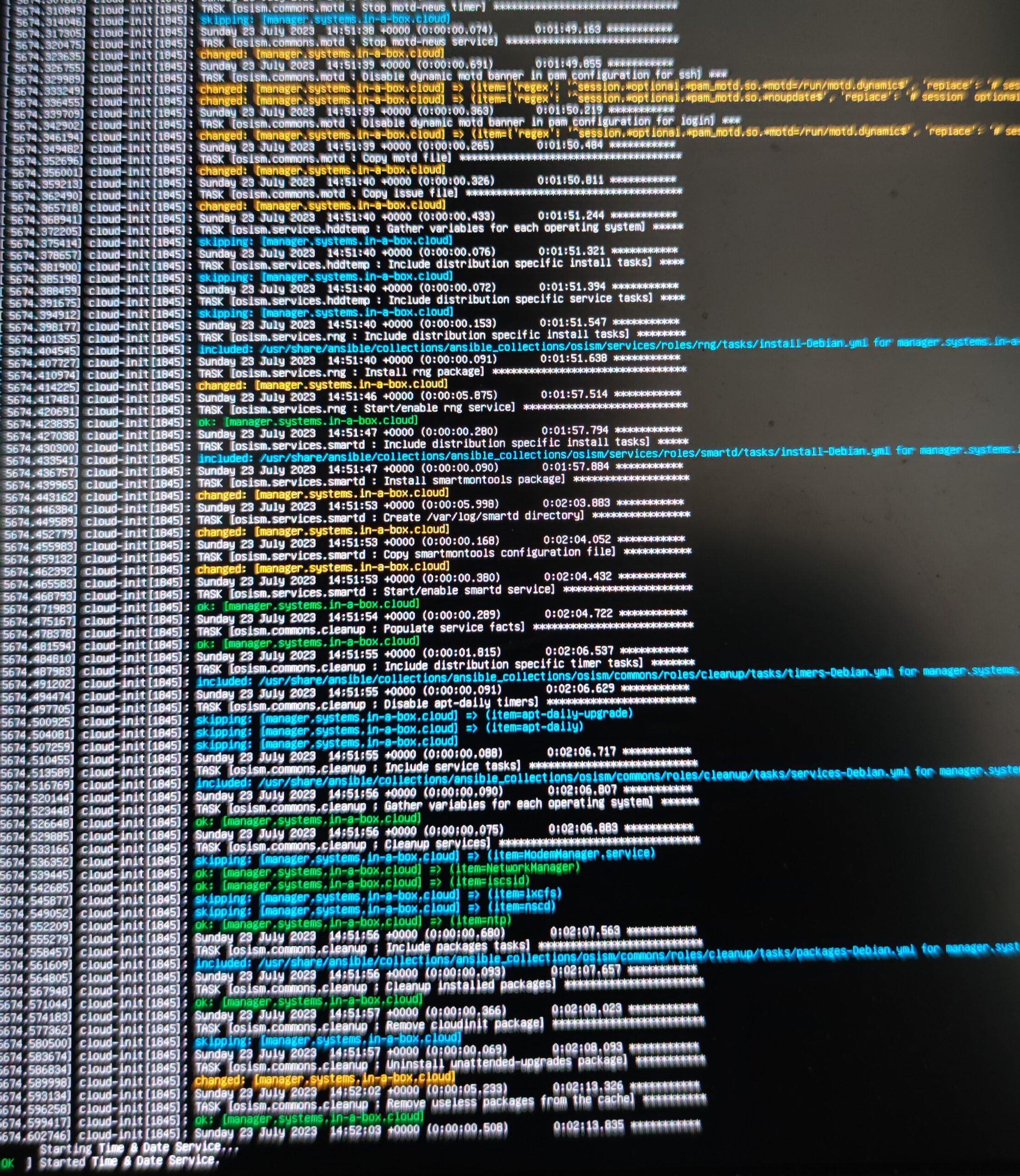 The deployment just flies across my screen – thanks to the larger font, I can finally read along. Heaps of system messages appear in different colors, all of which have a meaning. Green is okay, blue or purple means skipped, and yellow means changed: