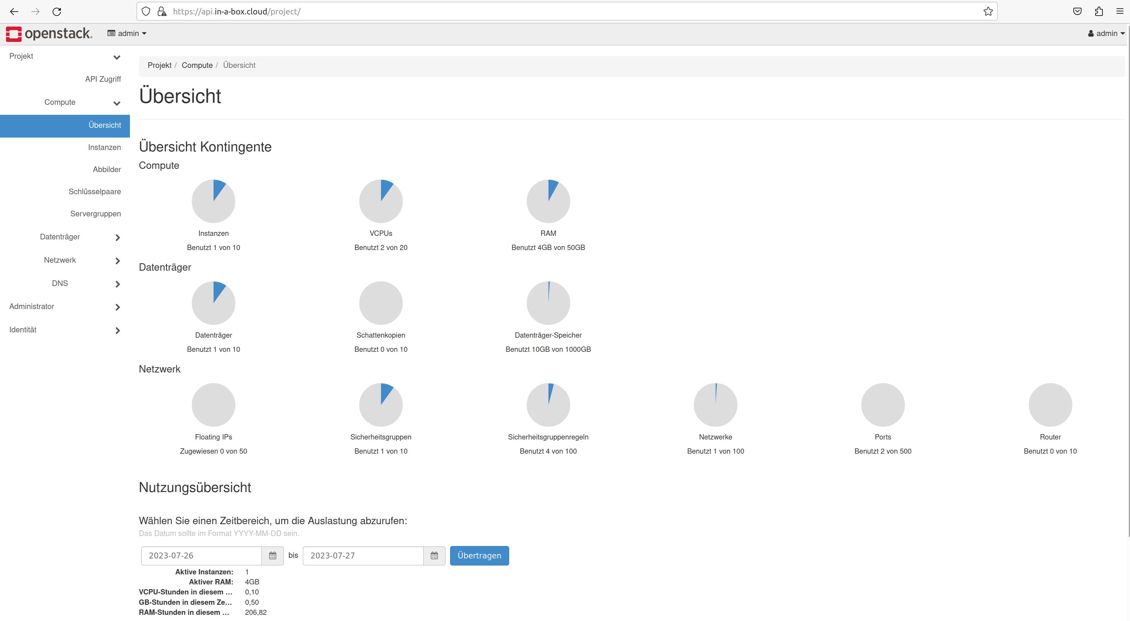 Horizon. The OpenStack web UI, and particularly interesting for me and our concerns (besides the OpenStack CLI client). Accordingly, I tested this front end more intensively. That is, creating, changing and deleting networks, instances, routers, drives, etc. I was surprised by the speed at which everything happened. Well, starting an Ubuntu server instance takes a few seconds, after all, there aren’t that many resources available (because of limitations by my laptop). But it works – I love it!