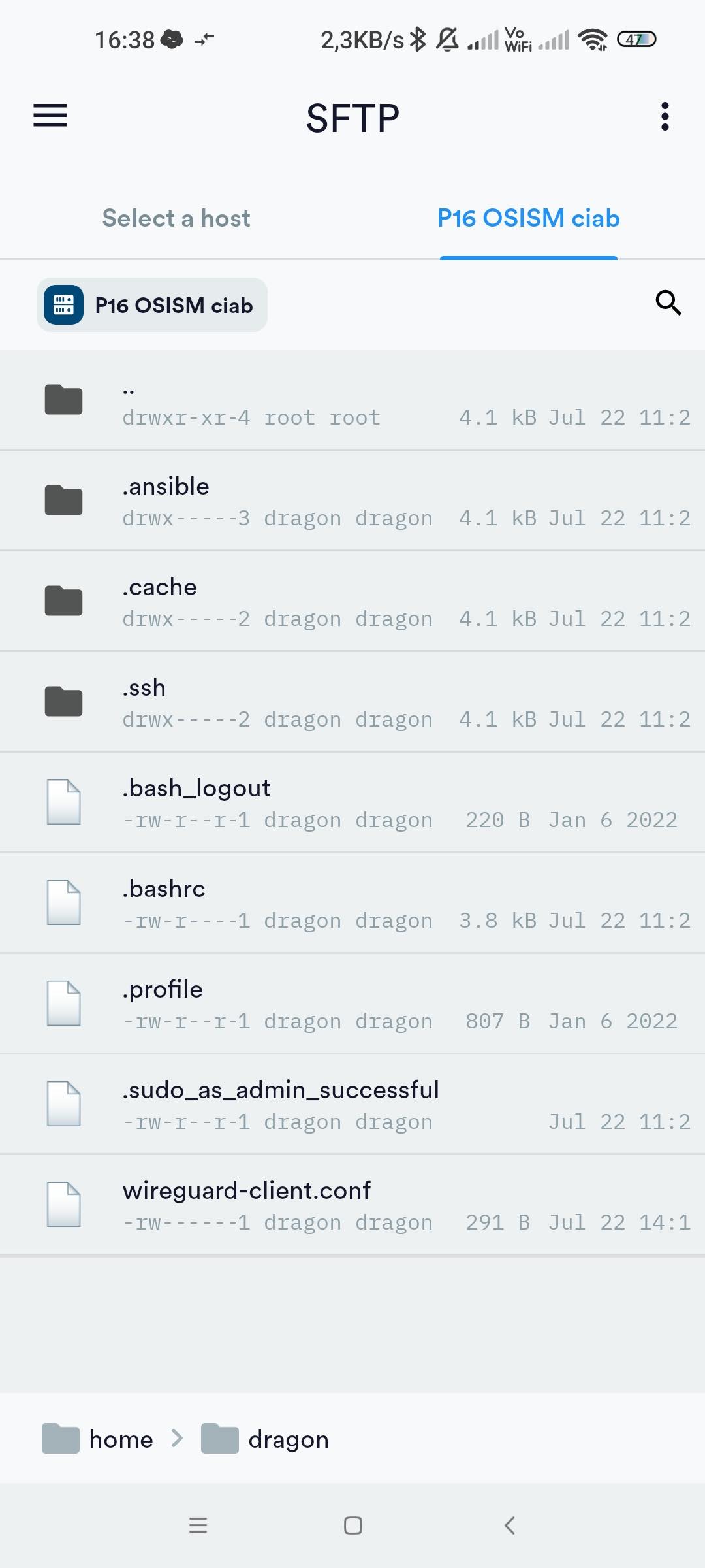 There is a config file for Wireguard in the /home/dragon/ directory. Using scp I copy and rename the file so that I can download it to my smartphone via SFTP. It all works so far. I installed Wireguard as an app anyway, since we also use it in our data center. So, the config was imported, the VPN switched on and lo and behold: the tunnel was up!
