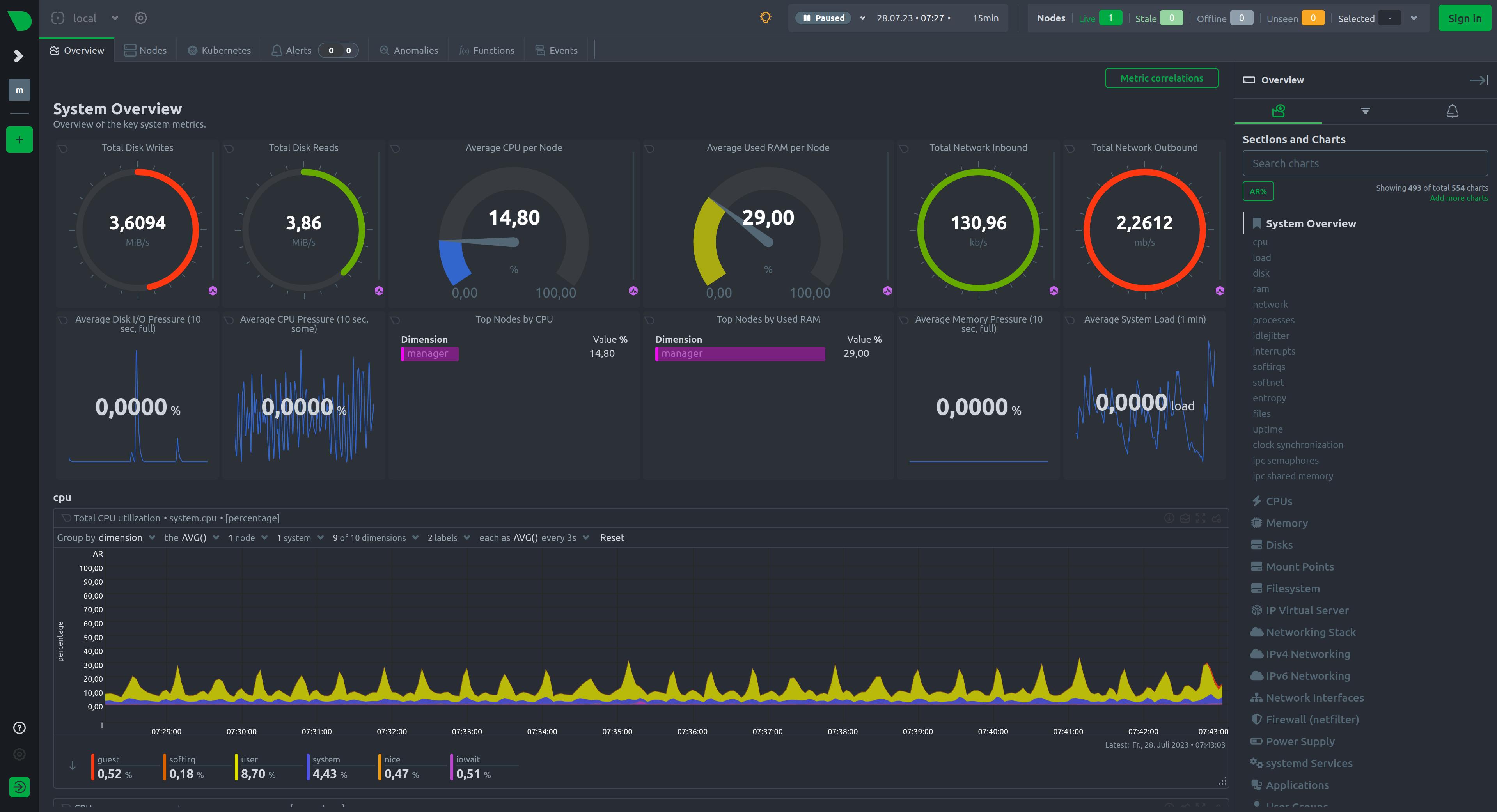 Netdata. Monitoring with a whole bunch of predefined graphics in the dashboard. Very extensive and great front end.