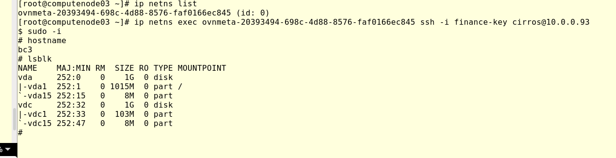 ip netns exec ovnmeta-20393494-698c-4d88-8576-faf0166ec845 ssh -i finance-key cirros@10.0.0.93