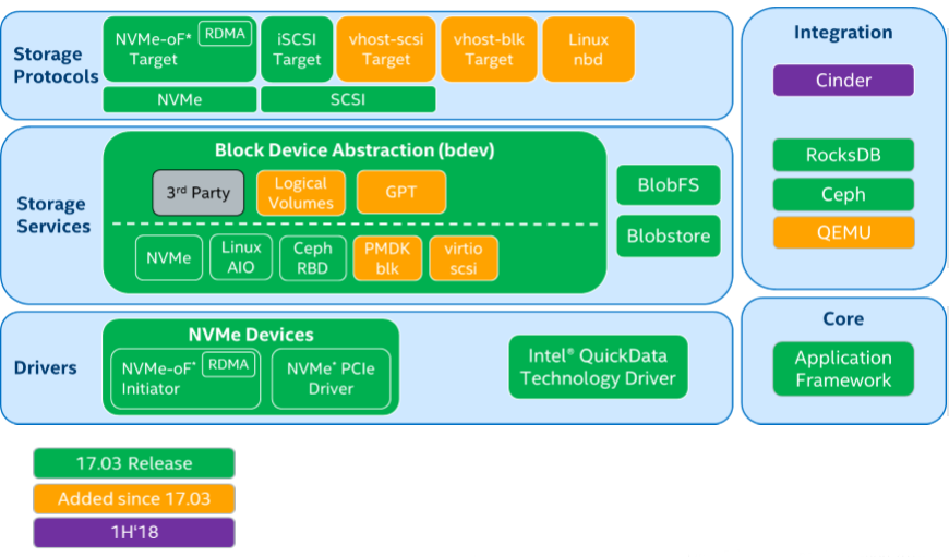 By summarizing, SPDK specially designed to extract performance from non-volatile media, containing tools and libraries for scalable and efficient storage applications utilized user space, and polled mode components to enable millions IO/s per core. SPDK architecture is open source BSD licensed blocks optimized for bringing out high throughput from the latest generation of CPUs and SSDs.