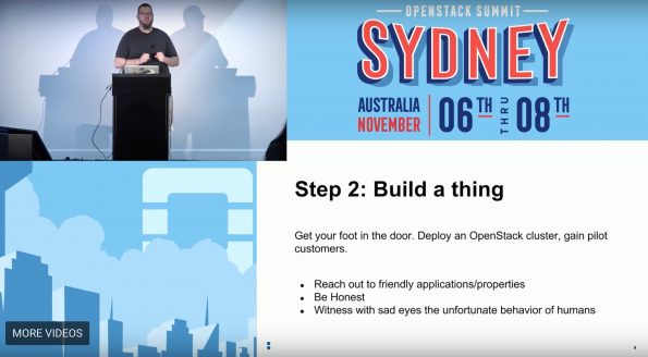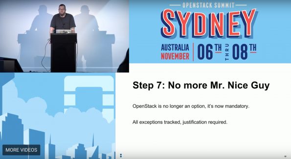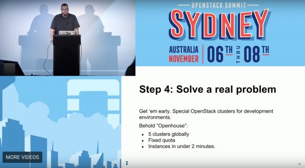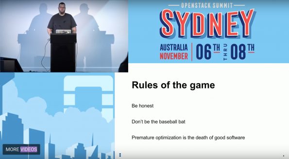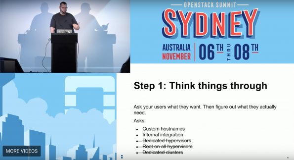 In addition, Penick said, you need to be able to address root needs of the organization instead of how OpenStack is supposed to work. Don’t try to solve every problem up front, either. “Premature optimization is the death of good software,” said Penick. “Don’t try and solve every problem right out of the gate. Focus on the big rocks in the jar.”