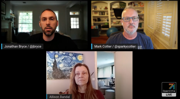 This week’s OpenInfra Live episode was hosted by Jonathan Bryce, Executive Director at the OpenInfra Foundation and Mark Collier, COO at the OpenInfra Foundation with special guest, Allison Randal, OpenInfra Foundation Chair of the Board. They answered open infrastructure questions live from the audience including the impact of hyperscalers on open source, how projects like OpenStack and Ceph fit into open infrastructure, and what the next decade looks like.