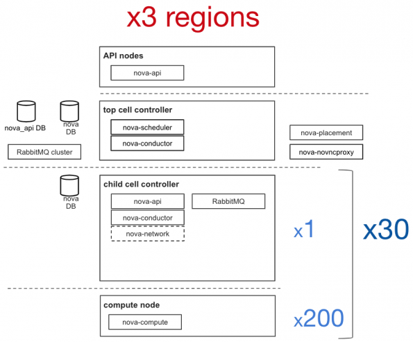 CERN and CERN IT rely heavily on OpenStack, and we have deployed OpenStack in production since 2013 with around 8,500 compute nodes with 300k cores and 35k instances in around 80 cells. In addition, we deploy three regions mainly for scalability and to ease the rollout of the new features.