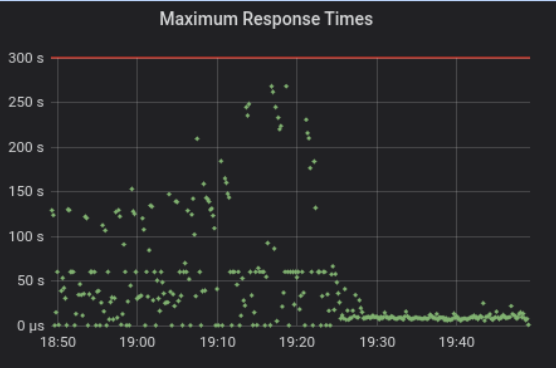 To solve this issue, we re-enabled pagination and changed the sync interval from 60 seconds to one hour. You can see how this solution affected the response time from the graph below. For a more scalable solution, we introduced “Inspector Leader Election”, which we developed together with upstream and deployed now in production. Inspector Leader Election will be available in the Victoria release, and you can see more details about how it works here.