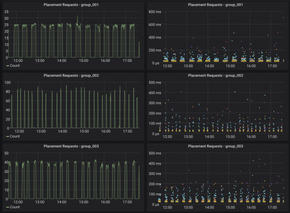 In the graph below, you can see the number of Placement requests per conductor group. As a result, the RT cycle time now only takes about 15 minutes to complete instead of three hours previously since it’s now divided through the number of conductor groups.