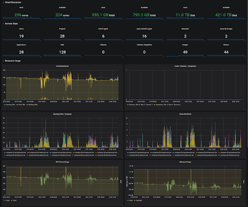 In terms of compute resources, we currently have 480 cores, 1.3To Ram and 80To in our Ceph clusters available. In terms of jobs, we ran around 60,000 jobs per month which means ~around 2,500 jobs per day. Jobs average time is less than 5 minutes.