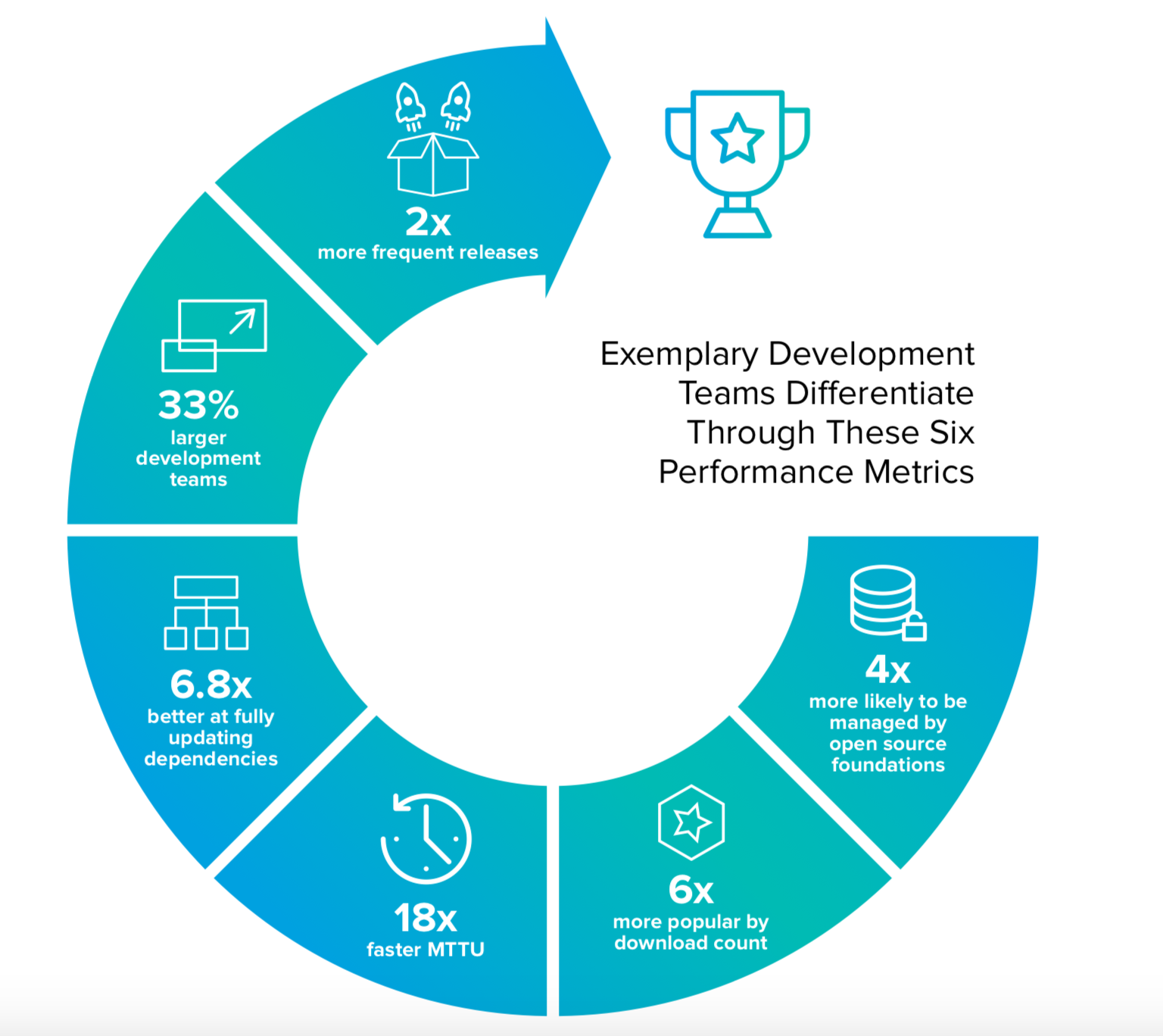 Beyond not overloading on components, researchers found a number of characteristics common to successful teams who tended to be larger, release software twice as fast and tinker away on projects that are six times more downloaded than other teams. Less obvious? These teams were dedicated to the workaday drudgery of updating dependencies and pushing patches.